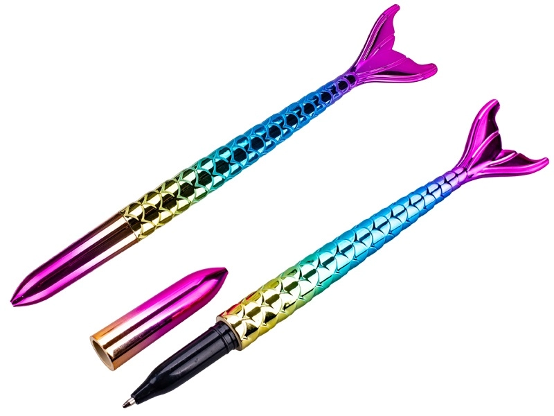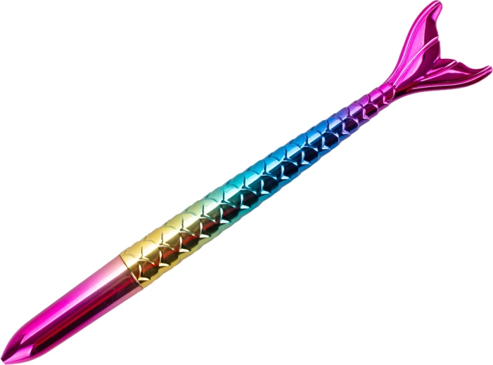En stilfuld kuglepen formet som en havfrues hale, der lyser op i hvert et penalhus og på ethvert skrivebord. Den byder på skinnende design, friske farver og behagelig skrivekomfort takket være længden på 16,5 cm. Den er lavet af slidstærk plast og er ideel til børn fra 3 år såvel som voksne, der vil tilføje en smule fantasi til skrivningen.