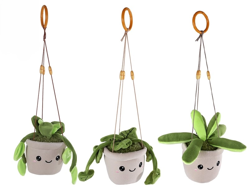 Vælg mellem flere udtryk, så den passer til din stil: med lysegrønne hængende blomster, med mørkegrønne hængende blade eller med markante, tykke blade. Denne tekstilplante er ikke kun et iøjnefaldende designelement, men også et bidrag til børns sanseudvikling – den bløde plysstruktur og de interessante former indbyder til berøring og udforskning.