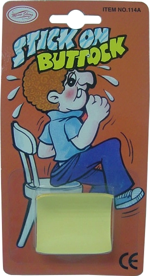 Leder du efter en hurtig og pålidelig måde at få vennegruppen til at grine? Fastklistret numse er et kompakt og let spøgstilbehør lavet af materialer i høj kvalitet for lang holdbarhed. Det er nok at bruge dobbeltklæbende tape, arrangere en lille scene og se situationen skabe sjov helt af sig selv.