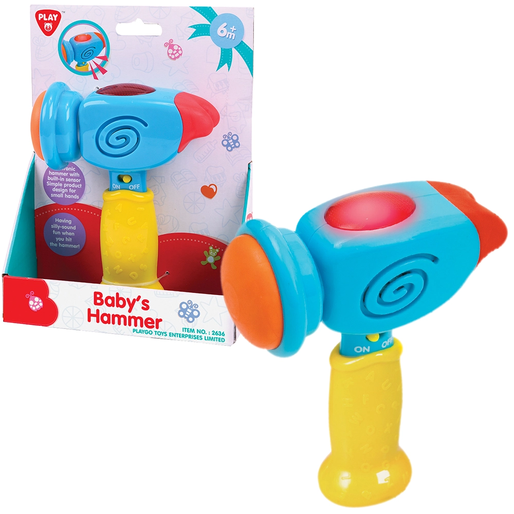 PLAYGO-hammeren er fremstillet med fokus på sikkerhed og holdbarhed, så den kan klare daglig leg derhjemme og på farten. De klare farver og den enkle betjening understøtter finmotorik, øje–hånd-koordination og naturlig nysgerrighed.