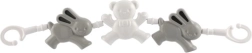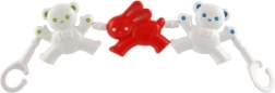 Denne plastkæde til barnevogn med tre figurer af bamser og en kanin giver underholdning og visuel stimulering for dit barn under køreturen.