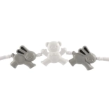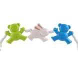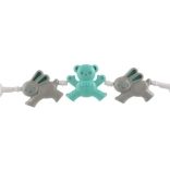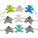 Barnevognskæden med bamser og kanin er et ideelt tilbehør til at underholde dit barn. Takket være de forskellige former og klare farver hjælper den med at udvikle finmotorik og dit barns sanser. Nem fastgørelse med kroge i begge ender gør det hurtigt og enkelt at sætte den på barnevogn eller tremmeseng.