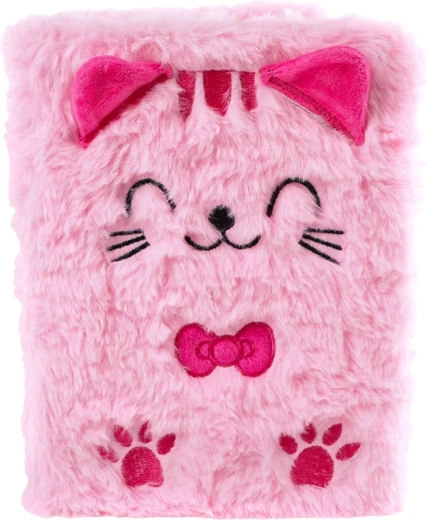 Stilfuld Glamour-notesbog med plysomslag med kattemotiv, ideel til noter, idéer og tegninger. Takket være de kompakte mål passer den i enhver taske, og 80 sider giver rigeligt med plads. En fantastisk gave til små og store elskere af søde designs, egnet fra 3 år.
