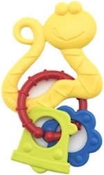 Denne farverige bidering og rangle i ét er ideel til de første måneder. Forskellige teksturer og ringe masserer blidt gummerne og giver lindring ved tandfrembrud, mens de sjove dyreformer vækker barnets nysgerrighed.