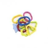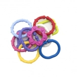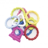 Denne farverige samling af plastformer er det ideelle første legetøj til babyer. Delene klikkes nemt sammen og holder godt, så børn igen og igen kan bygge kæder og enkle konstruktioner. De forskellige teksturer og farver giver rig sansestimulering, og rasleeffekten fanger og beroliger barnet.