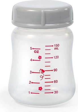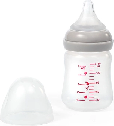 Det bløde silikoneindsats beskytter den følsomme hud og sikrer tæthed. Den stabiliserende fod forhindrer væltning og spild af mælk.