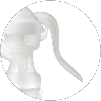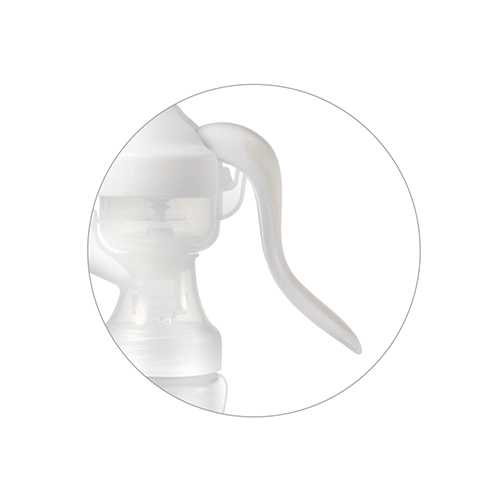 Det gennemtænkte ergonomiske håndtag minimerer belastningen af hånden og passer perfekt til både højre- og venstrehåndede. Den enkle konstruktion med få dele kan hurtigt skilles ad og rengøres, så du har mere tid til babyen. Sættet indeholder også en flaske på 150 ml, anatomisk suttedel 0 m+ og låg til sikker opbevaring af mælken.