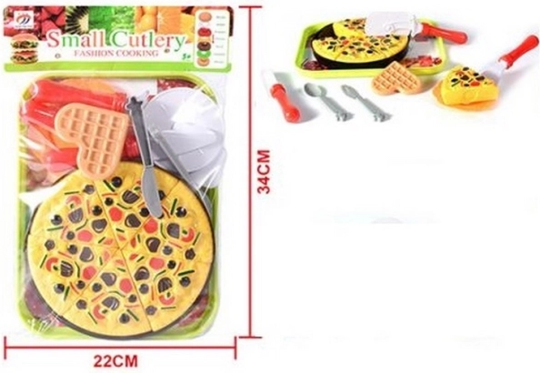 Sjovt sæt til små kokke med realistiske plastikstykker af pizza og kage til leg i køkken eller konditori. Understøtter børns fantasi, finmotorik og fælles leg. Sikre plastdele, let at gribe og rigtig sjovt for børn.