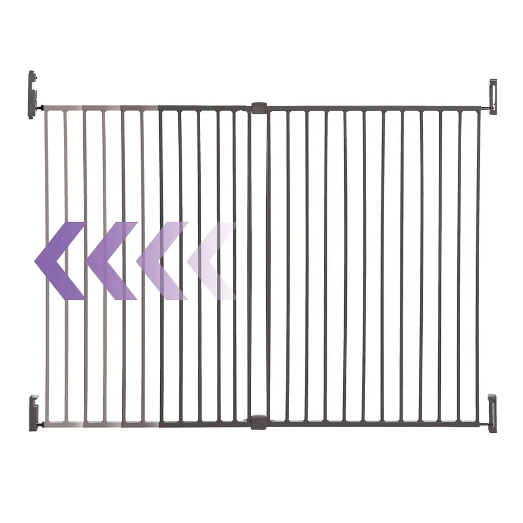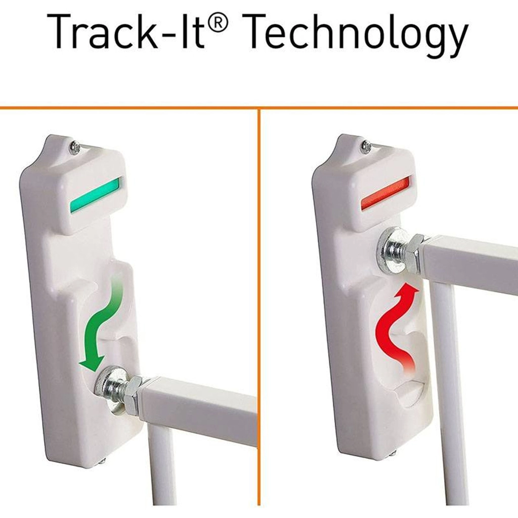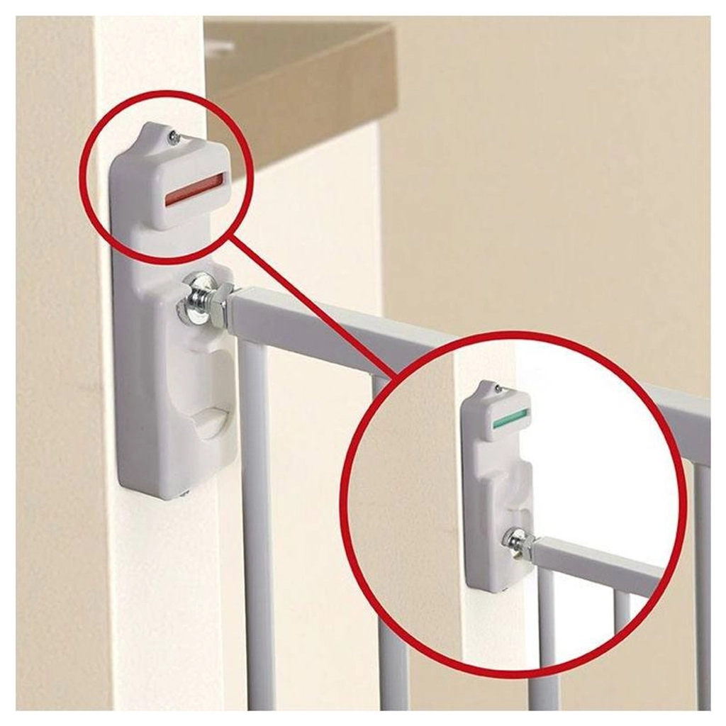 Til brug på trapper kan portens bevægelse begrænses til én retning ved hjælp af en roterende eller aftagelig spærring. Den unikke EZY-Check Indicator viser tydeligt låsestatus – grøn ved korrekt sikring, rød når det er låst op. Fast hardwaremontering sikrer maksimal stabilitet og lang levetid.