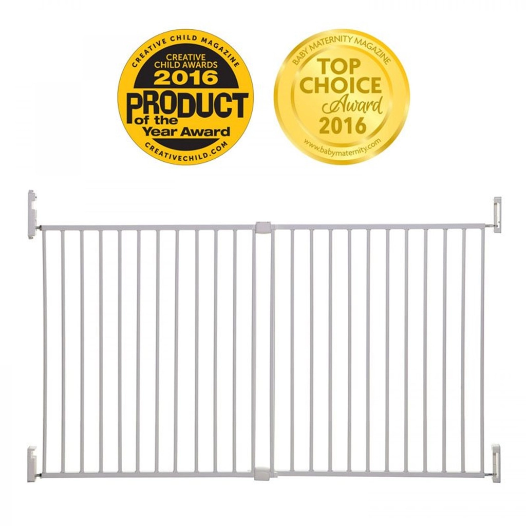 Beskyt dit hjem stilfuldt og sikkert med børnegitteret DREAMBABY Broadway. Takket være den smarte puzzle-lås og Track-It-teknologi kan du nemt låse op og åbne med én hånd, hvilket er praktisk i hverdagen. Gitteret åbner i begge retninger, og passagen er tærskelfri, så risikoen for at snuble minimeres.