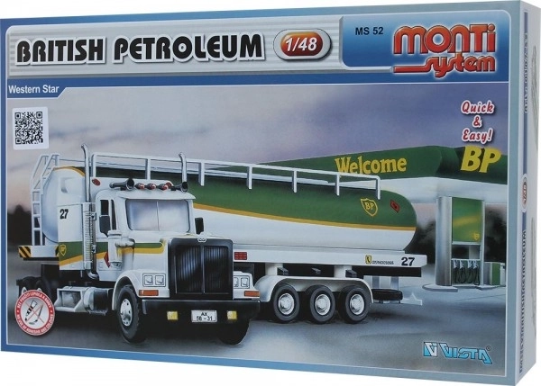 Byg en stilfuld model af BRITISH PETROLEUM i skala 1:48 fra MONTI SYSTEM – et nemt byggesæt uden lim og uden maling, ideelt til børn fra 8 år og begyndere inden for modelbygning.