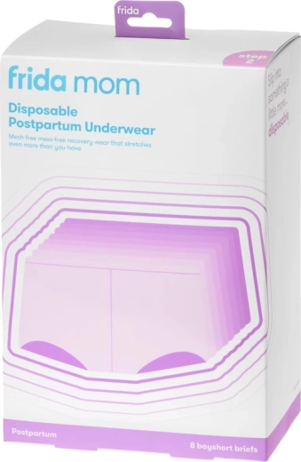 Forkæl dig selv med komfort i barselsperioden med engangs postpartum-trusserne FRIDA MOM i shorts-snit. Disse åndbare, sømfrie og ultraelastiske trusser af mikrofiber og spandex holder bind og andre hjælpemidler sikkert på plads, trykker ikke nogen steder og passer godt til kroppe i forskellige former. Størrelse One size dækker taljeomkreds 70–110 cm (maks. stræk op til 140 cm).