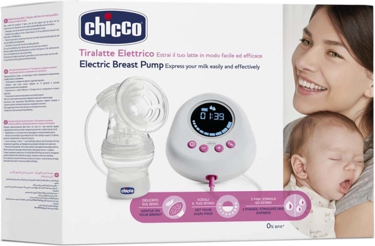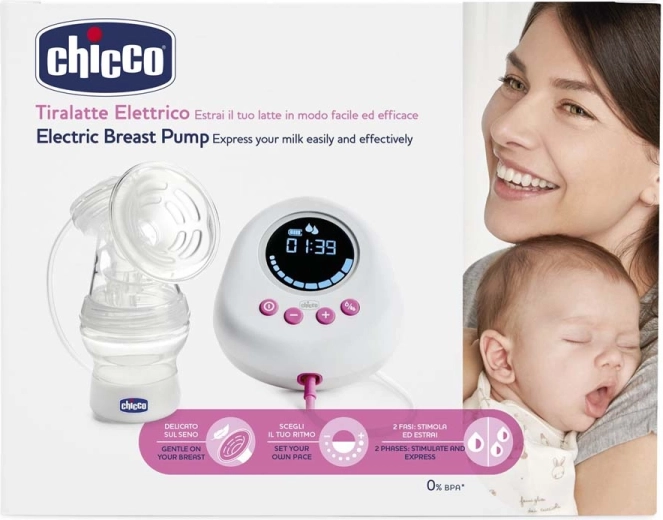 Elektrisk brystpumpe CHICCO til behagelig og skånsom pumpning hvor som helst. Tilbyder 2 pumpetrin (stimulerende og udpumpende), op til 10 intensitetsniveauer, støjsvag drift og en blød silikoneindsats for skånsom kontakt med huden. Kan bruges med netadapter eller AA-batterier og er kompatibel med Chicco Natural Feeling-flasker.