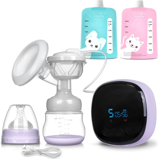Praktisk og stille elektrisk Berdsen-brystpumpe med to sugefaser og 9 intensitetsniveauer i hver fase sikrer behagelig og effektiv udpumpning uden smerte. Den har en blid massagepude til at stimulere mælkeflowet, et overskueligt LCD-display, genopladeligt batteri og er BPA-fri. Der medfølger også genlukkelige mælkeopbevaringsposer til nem opbevaring.