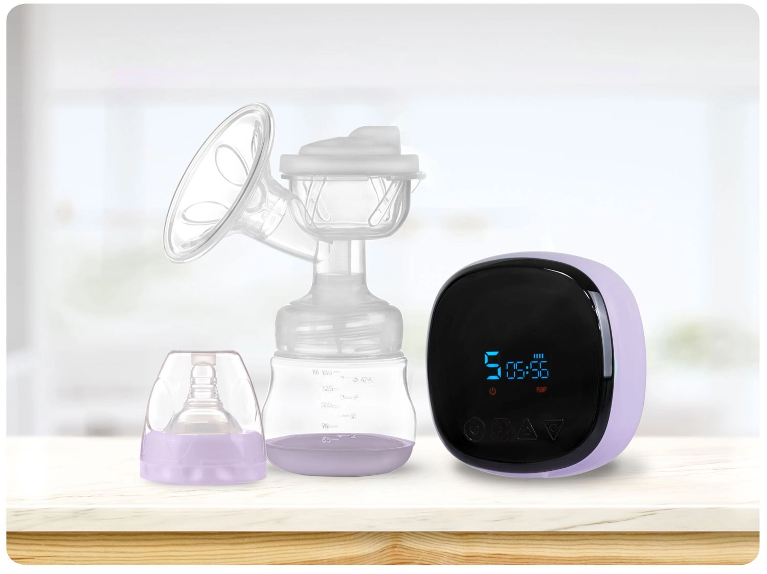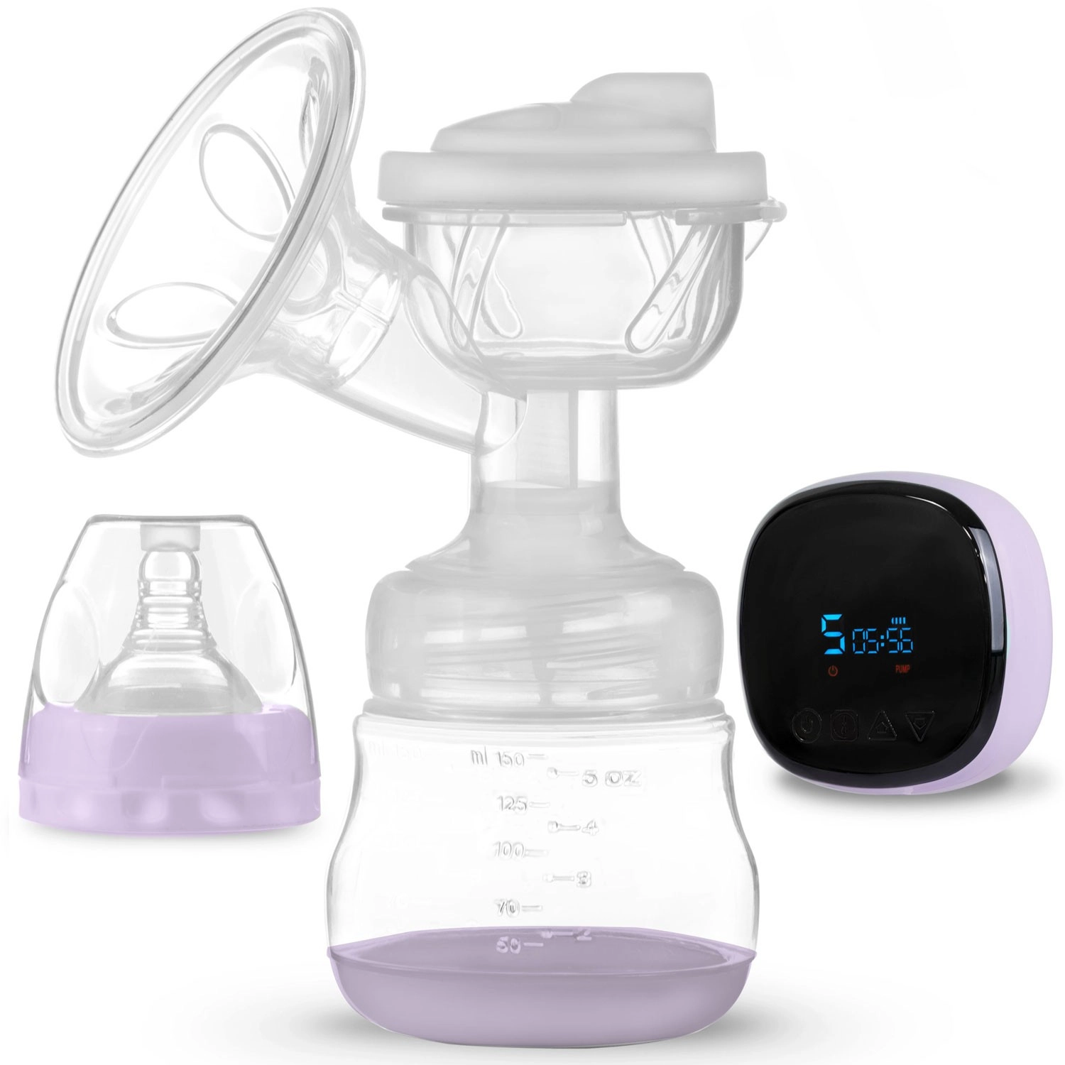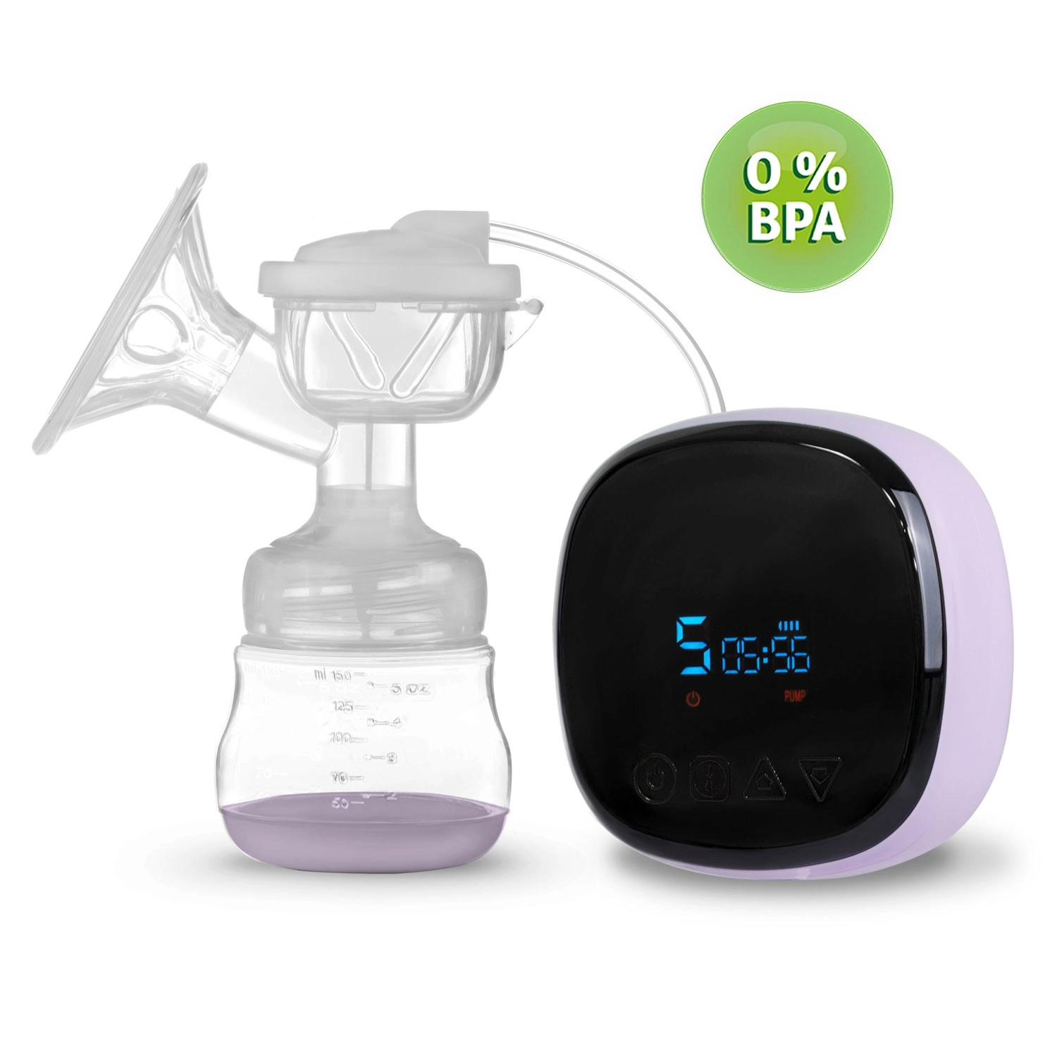 Med det intuitive betjeningspanel med LCD vælger du tilstand (stimulering, massage, dyb udpumpning), justerer intensiteten og tjekker batteristatus. Brystpumpen er meget stille, let at skille ad og rengøre. Den er BPA-fri for maksimal sikkerhed for barnet. I pakken finder du en 150 ml flaske, sut, strømadapter samt 2 sterile poser til mælk med skrue-låg.