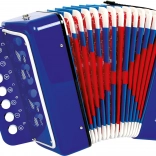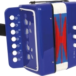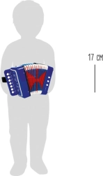 Denne blå børneakkordeon er et fantastisk startpunkt for små begyndere. Takket være den lette konstruktion og den praktiske rem ligger den godt i hånden, og de farvede bælger samt tydeligt markerede knapper gør de første spilleforsøg nemmere. Børn udvikler gehør, rytme og finmotorik, mens de nyder en sjov og kreativ leg.