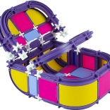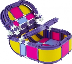 Byggesættets dele er i livlige farver som lilla, gul, pink og blå, som stimulerer børns fantasi.