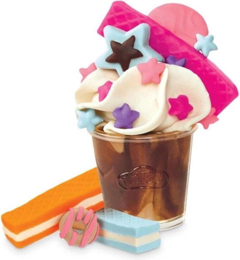 Oplev fantasiens verden med det kreative sæt Play-Doh Farverig Café. Børn kan lave deres egne farverige drikke, isdessertglas og søde lækkerier – fra kaffe og te til frappé og milkshakes. Med håndtaget fylder de bægrene, i stationen tilføjer de “flødeskum”, og med formene tryller de småkager, cupcakes og donuts frem. Sættet indeholder 8 bøtter Play-Doh og 20 tilbehørsdele til endeløs baristaleg.