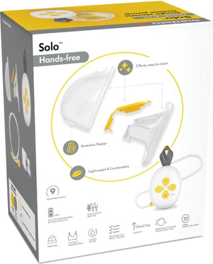Solo hands-free er en smart løsning til mødre, der ønsker bevægelsesfrihed og effektiv pumpning uden kompromiser. Den anatomisk designede opsamlingsbeholder følger brystets form, skåner det følsomme væv og fremmer bedre vakuum og højere udbytte takket være den videnskabeligt dokumenterede 105° vinkel. Med en vægt på kun 76 g hører den til blandt de letteste på markedet, passer komfortabelt i de fleste amme-BH'er og forbliver diskret selv ved multitasking.