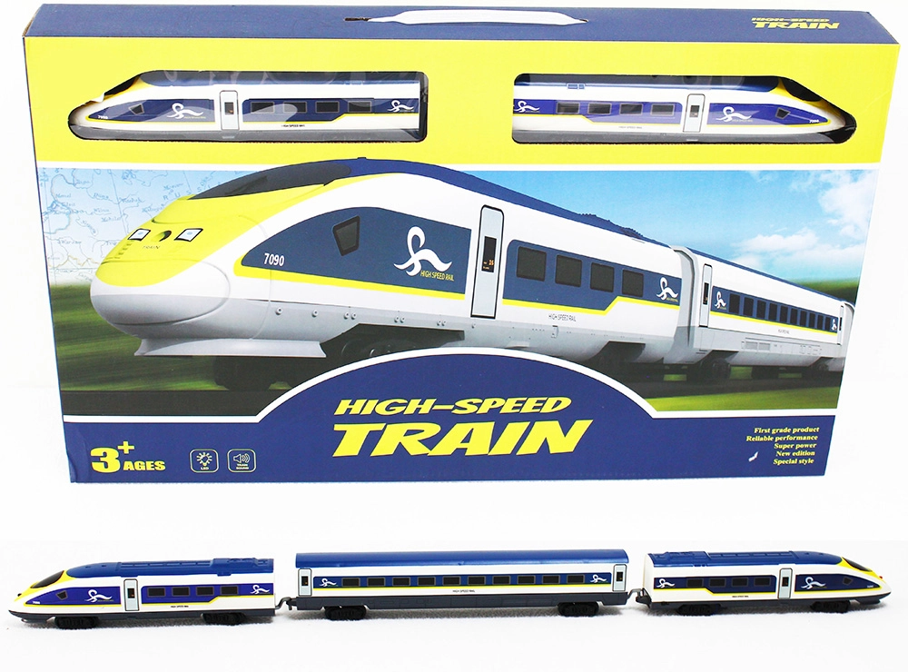 Den elektriske modeljernbane giver en realistisk oplevelse af højhastighedsjernbaner til små togentusiaster. Sættet indeholder 2 lokomotiver (1x batteridrevet, 1x uden drivkraft), 2 vogne og 29 skinneelementer til at bygge forskellige baner. Med et tryk på en knap aktiveres lys- og lydeffekter, som forstærker stemningen af en rigtig togtur.
