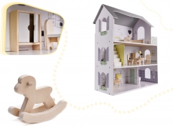 Udforsk magien ved tr0e6huset til dukker, som vil blive fokuspunktet i alle bf8rns lege. Huset har tre etager og er udstyret med stilfulde tr0e6mf8bler, der giver hvert rum et unikt udseende. Ve6lg mellem haven, kf8kkenet, soveve6relset og stuen, der er perfekt designet til leg med dukker.<0/p>