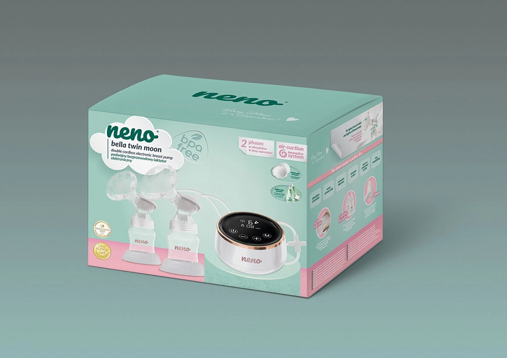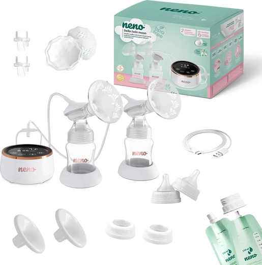 Den moderne trådløse dobbelte brystpumpe Neno Bella Twin Moon tilbyder tofase-teknologien DuoComfort, støjsvag drift og op til 120 minutters trådløs brug. Med 6 niveauer af stimulering og 9 niveauer af dyb sugning efterligner den den naturlige ammerytme. De bløde silikoneindsatser på 24 mm er skånsomme mod huden og lette at rengøre. Der er både automatisk og manuel faseomskiftning, en præcis timer og mulighed for at pumpe direkte i poser for hygiejnisk opbevaring. Det rige tilbehør i pakken gør denne pumpe til en ideel hjælper til opstart og støtte af mælkeproduktionen.