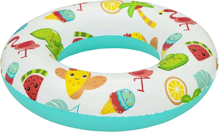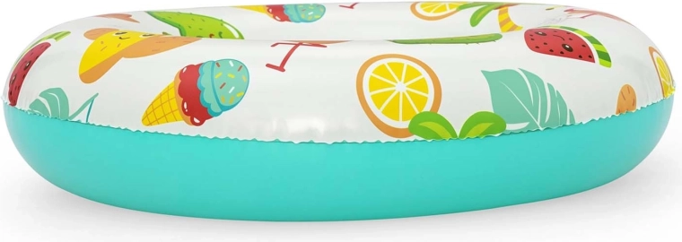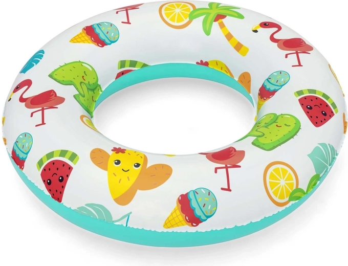Farverige motiver med kaktusser, frugt og sommerikoner gør ringen til et sjovt tilbehør til både pool og strand.