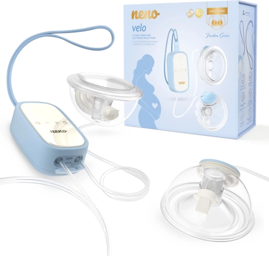 Neno Velo er en smart elektrisk brystpumpe designet til ægte frie hænder. De to diskrete opsamlingskopper passer perfekt i BH’en, og takket være den lette enhed med rem kan du bære den om halsen eller fastgøre den i taljen. Trefaset pumpning med 8 intensitetsniveauer efterligner den naturlige sutterytme, hvilket hjælper med skånsomt og effektivt at starte og opretholde mælkeflowet.