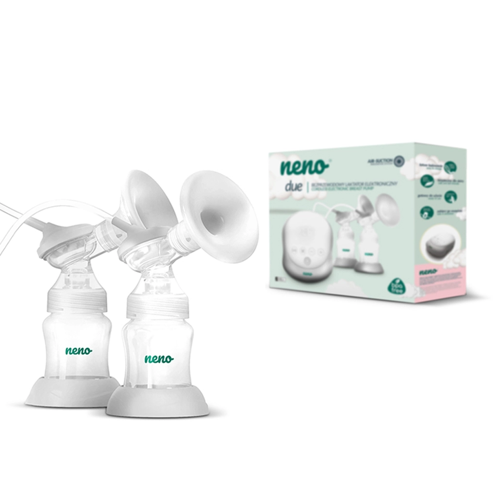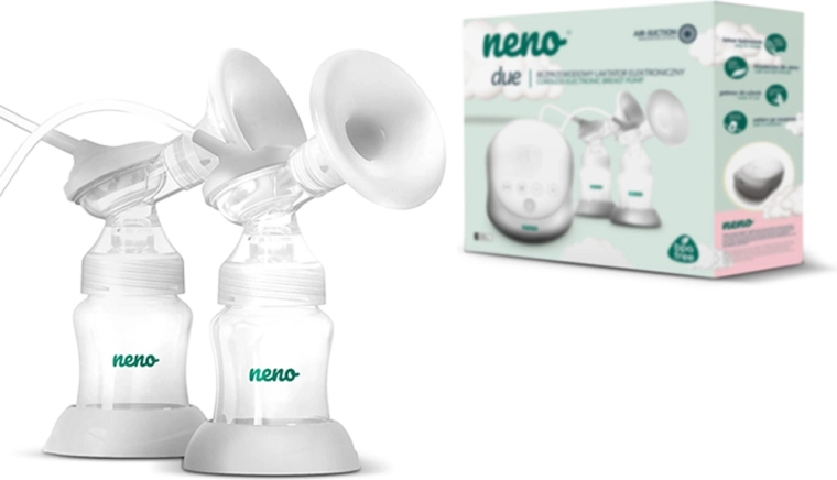 Den trådløse, dobbelte brystpumpe Neno Due forkorter pumpetiden og sikrer maksimal hygiejne. Den tilbyder simultan pumpning fra begge bryster, antireflukssystem mod tilbagestrømning, intuitiv touchbetjening med hukommelse og stimuleringsfunktion for bedre nedløb. Bløde brystskjolde af japansk silikone, sikre materialer uden BPA og automatisk slukning efter 30 minutter gør Neno Due til en pålidelig hjælper for enhver mor.
