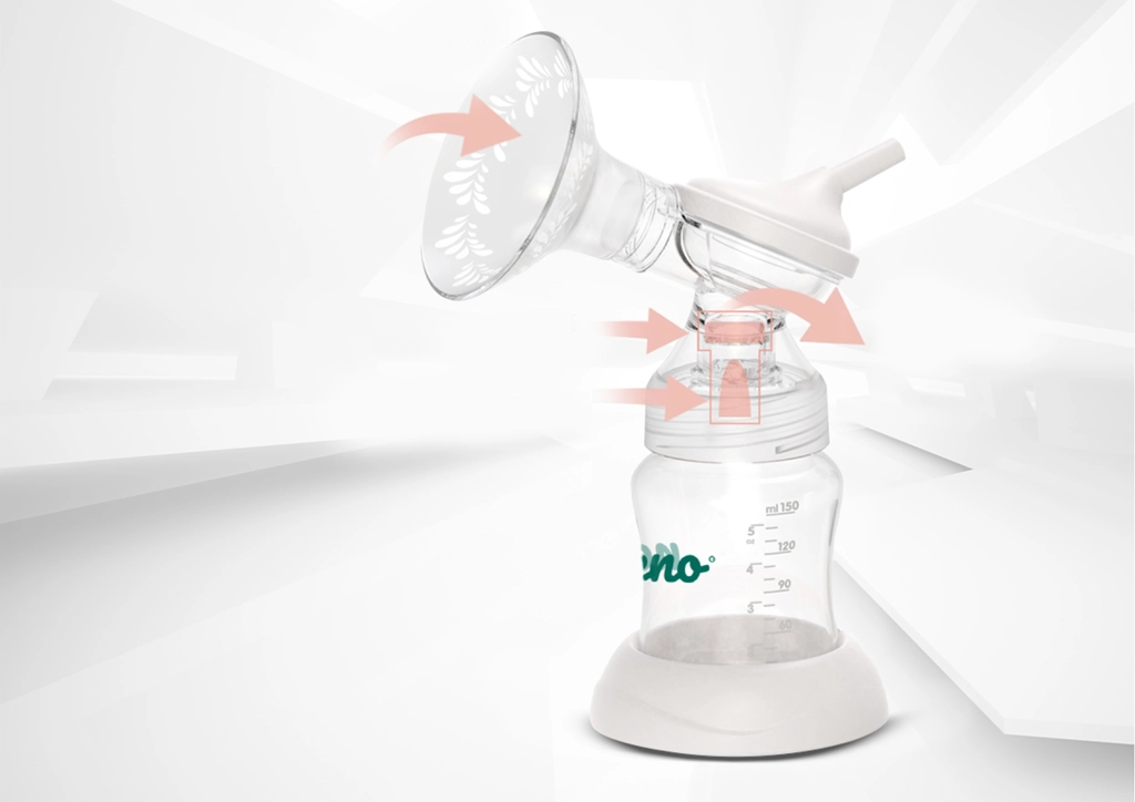 Bløde skjolde af japansk silikone for højere komfort samt antireflukskonstruktion, der forhindrer tilbagestrømning af mælk.