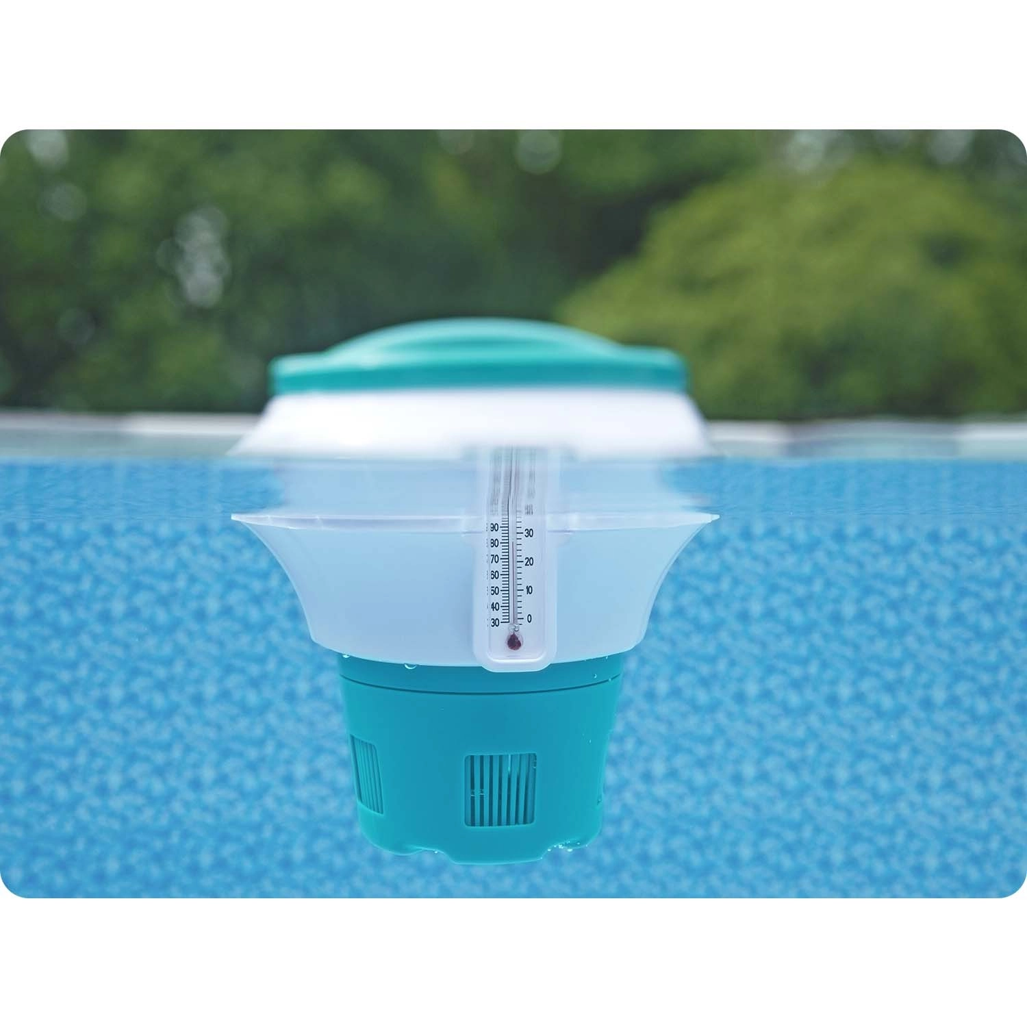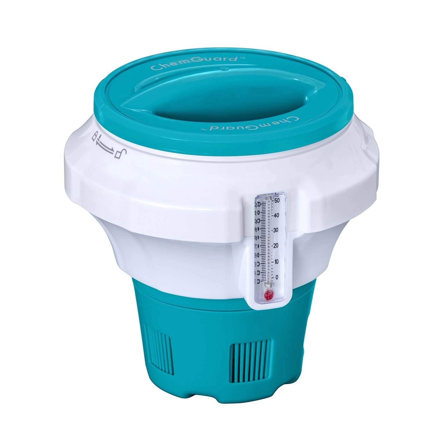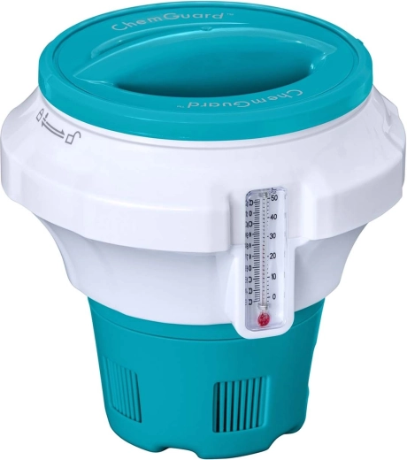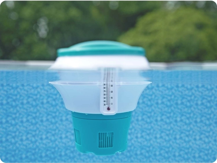 Den flydende doserer BESTWAY ChemGuard er en pålidelig løsning til løbende desinfektion af vandet. Læg en tablet med en diameter på 7,6 cm (3"), indstil gennemstrømningen, og dosereren sørger for jævn frigivelse af klor eller brom. Det integrerede termometer i °C og °F giver dig et øjeblikkeligt overblik over vandtemperaturen, så du altid ved, hvornår det er ideelt at bade, og om doseringen eventuelt skal justeres.
