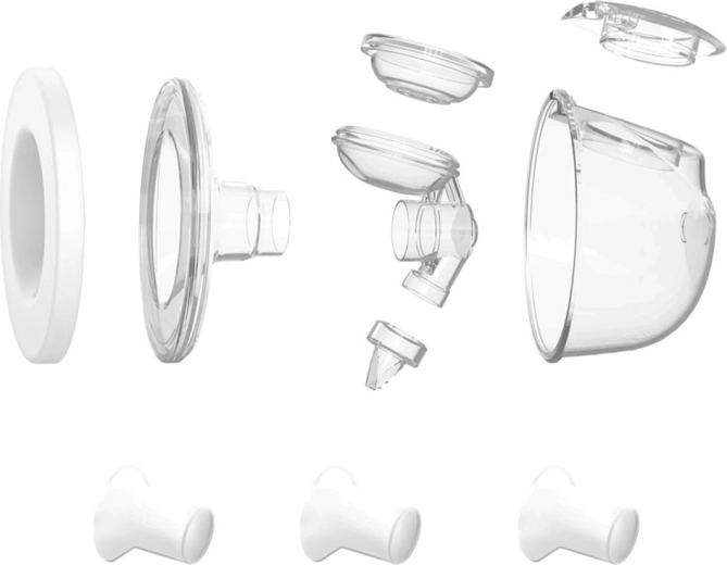 Pakken indeholder et komplet sæt til pumpning i flaske samt hands-free opsamling i diskrete 240 ml beholdere, som passer i en standard amme-bh. Det lukkede system beskytter mælken mod tilbagestrømning og kontaminering. Med et bredt udvalg af indsatser til brystskåle (op til 7 størrelser) finder du nemt den perfekte pasform uden tryk og ubehag.