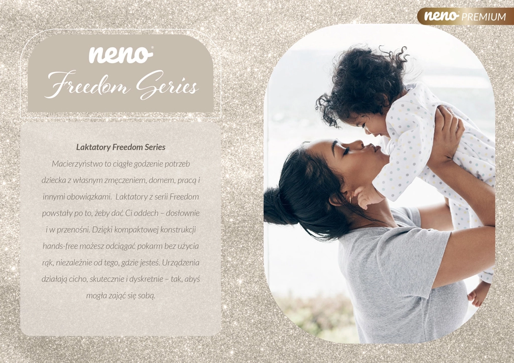 Neno Camino Pro fra Freedom-serien kombinerer ydelsen fra en dobbelt elektrisk brystpumpe med et let, trådløst design og ergonomiske, bløde skåle. Det tre-fasede program efterligner barnets sutterytme – fra blid stimulering over dyb udpumpning til en kombination af begge – for højere udbytte og støtte til laktationen. Integreret timer, tydeligt display og touch-betjening giver fuld kontrol med én hånd.