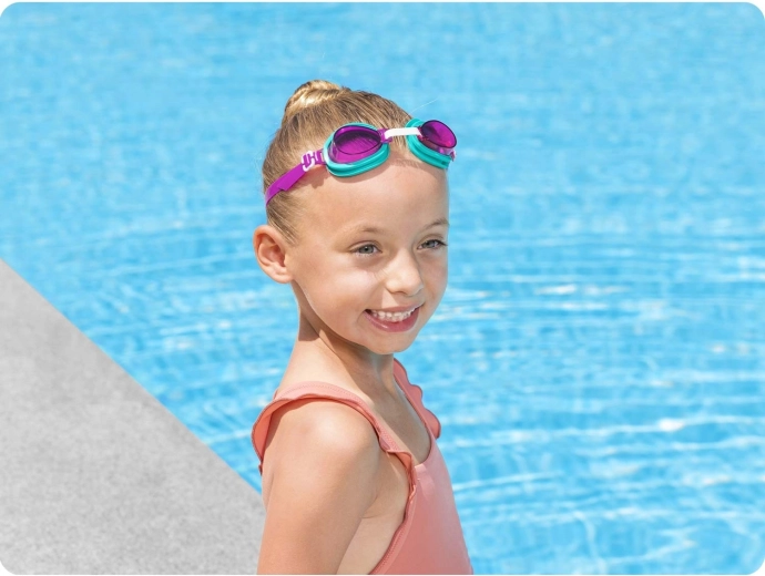 Disse BESTWAY børnesvømmebriller kombinerer komfort, sikkerhed og stil. De bløde, hypoallergene linser og silikoneforseglinger former sig skånsomt efter ansigtet, reducerer indtrængning af vand og øger komforten ved både svømning og dykning. Den lilla‑turkise farvekombination er flot og let at få øje på ved poolen.