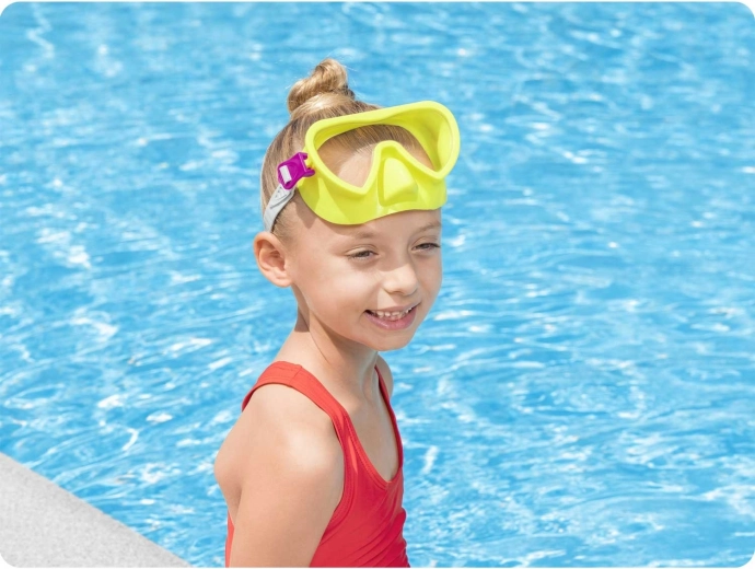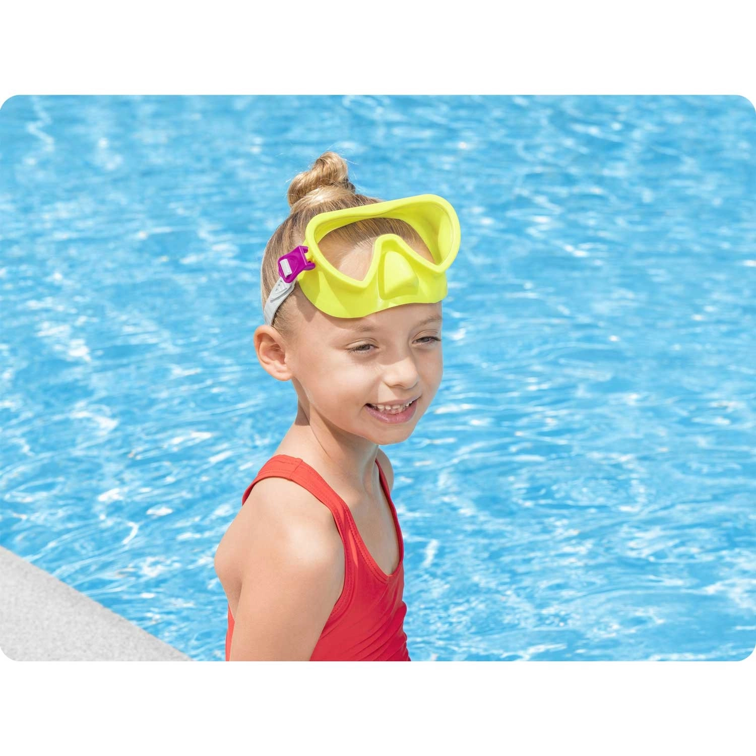 Denne lette og komfortable Bestway-maske er ideel til børn ved svømning og snorkling i både pool og hav. Den bløde tætningskant tilpasser sig ansigtets form og hjælper med at forhindre vandindtrængning, mens den nemme remjustering sikrer en sikker og stabil pasform.