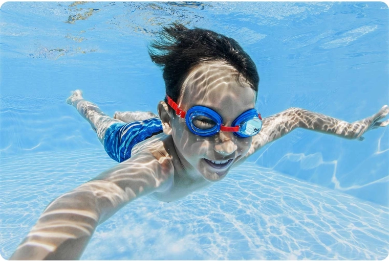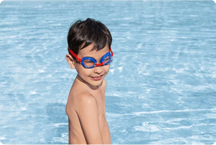 Klare, hypoallergene linser giver god sigt under vandet, og UV-beskyttelsen hjælper med at skærme børns øjne i solen.