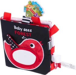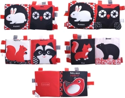 Forbered dit barn på en magisk rejse med at opdage verdens former og mønstre med denne fantastiske bog. Bogen er designet i kontrastfarver som sort, hvid og rød, der er ideelle til visuel stimulering af små børn. Bogen indeholder fire tekstilsider med dyr som fugl, kanin, ugle, ræv, bjørn, egern og vaskebjørn.
