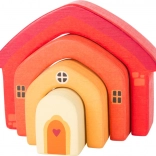 Dette motoriklegetøj i form af et hus består af fire buede dele, der kan sættes ind i hinanden eller stables. Det enkle design, de bløde kanter og de varme trænuancer gør legetøjet til både en stilfuld detalje på børneværelset og et fantastisk redskab til udvikling af færdigheder.