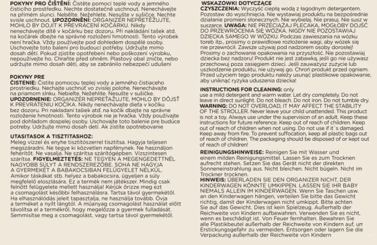 - Overbelast ikke tasken på barnevognen; produktet er ikke legetøj; brug under opsyn af en voksen