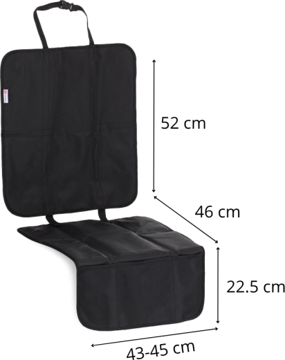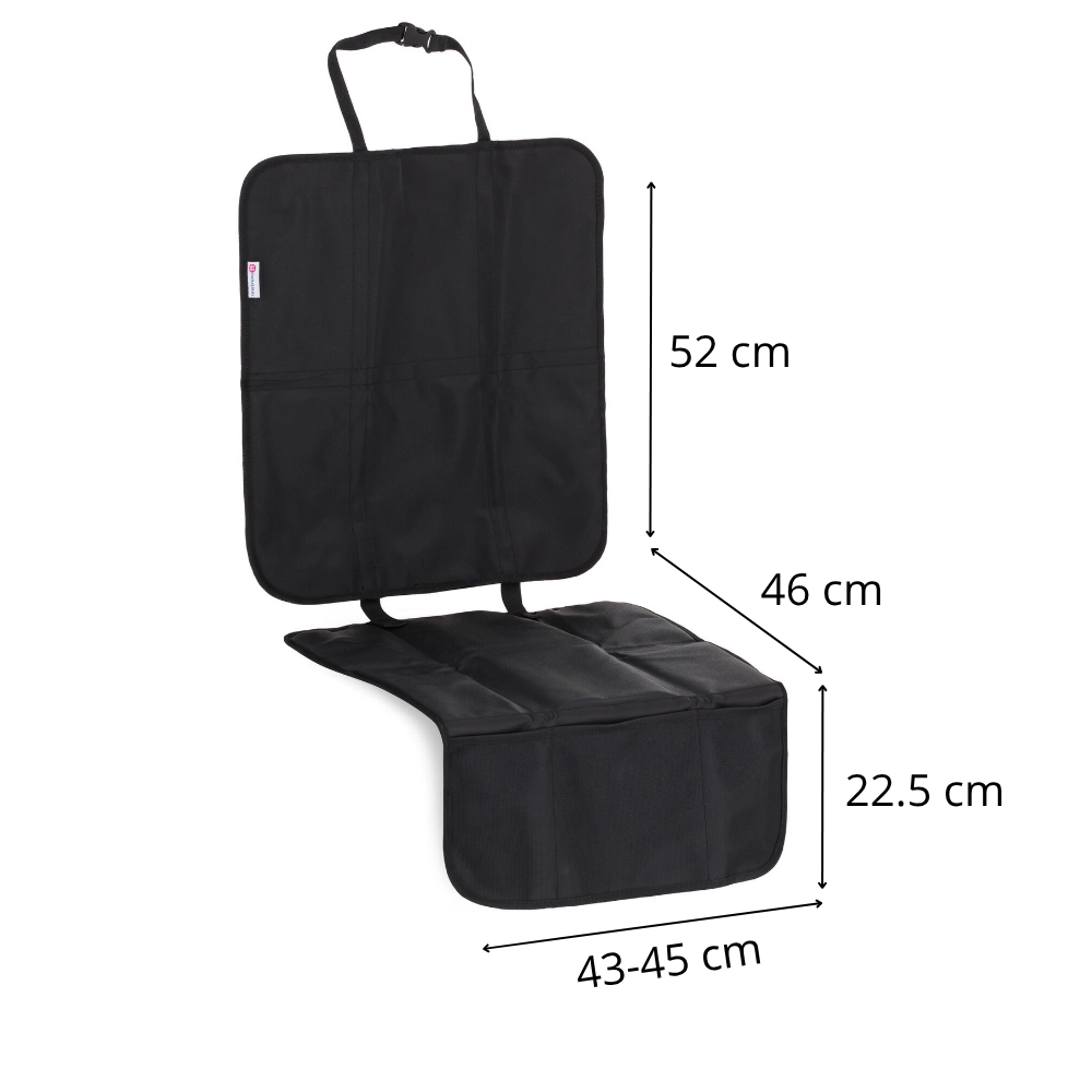 - Beskyttelse af sæde under og bag autostolen, opbevaringslommer