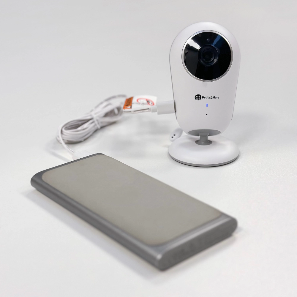 Forældreenheden har et genopladeligt batteri til trådløs brug, kameraet strømforsynes fra lysnettet og kan også bruges med en powerbank for fleksibilitet på farten. Understøtter tilslutning af op til 4 kameraer for overvågning af flere rum.