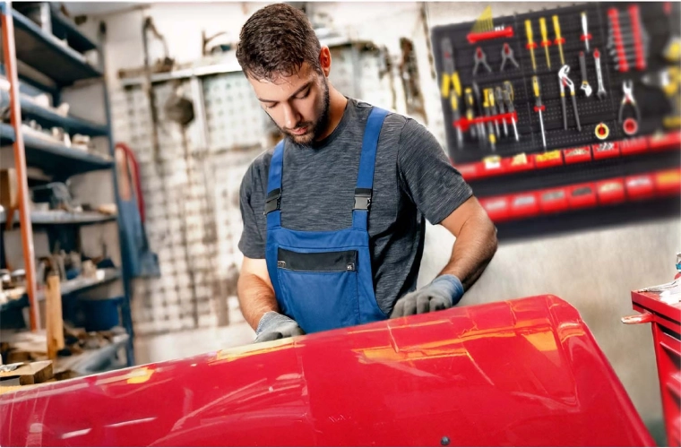 - Maksimal overskuelighed: alt synligt, hurtig adgang til værktøj og små befæstelsesdele.