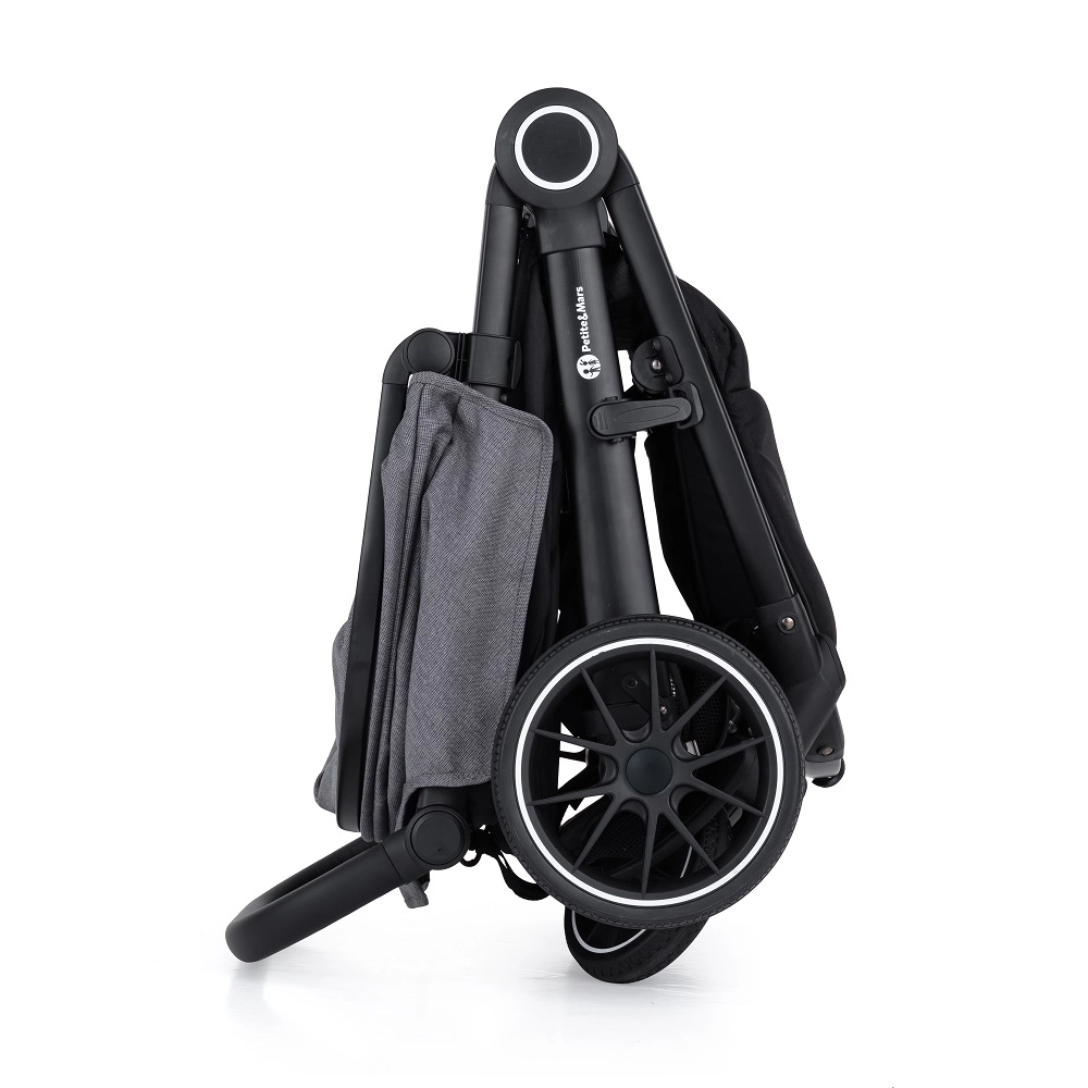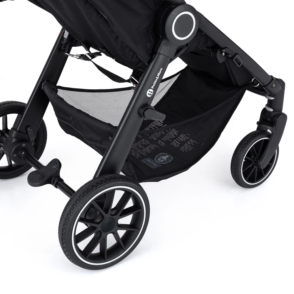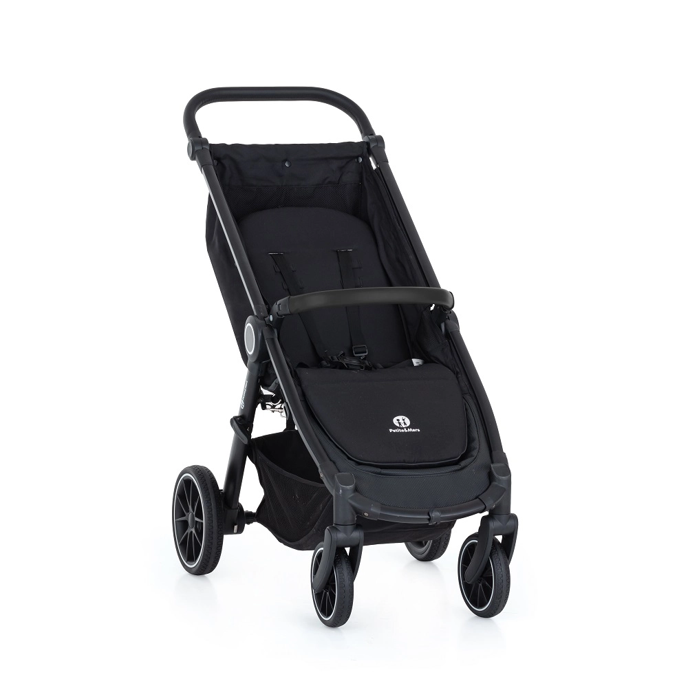 Petite&Mars Street+ RWS Black Limited 100 er en elegant og praktisk sportsklapvogn, som også klarer mere krævende terræn. Den stabile, let affjedrede konstruktion og fuldgummihjulene RWS giver en jævn kørsel uden frygt for punktering. Velegnet til børn fra 6 måneder op til 22 kg, med samlet belastning op til 25 kg.