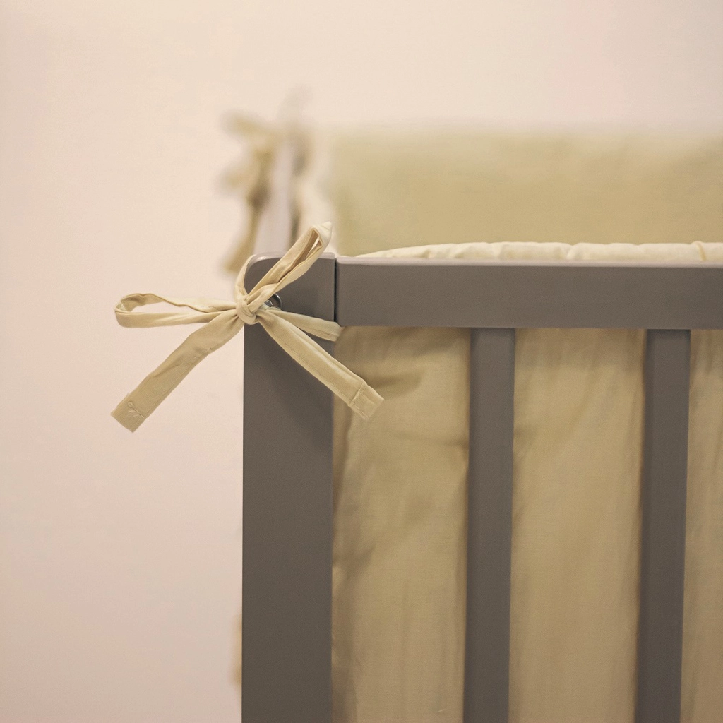 Den lange polstrede sengekant beskytter babyen mod stød mod tremmerne og skaber et hyggeligt miljø for en rolig søvn.