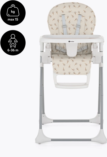 Den praktiske udskiftning af betrækket understøtter bæredygtighed: Match højstolen med din indretning, giv den videre til et nyt barn eller giv den nyt liv i en anden familie. Den ergonomiske form, behagelige blødhed og sikre materialer sikrer komfortabel siddestilling for børn fra ca. 6 til 36 måneder.