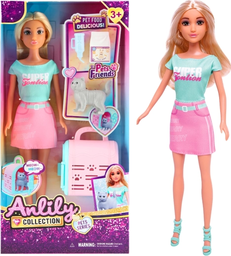 Dette fortryllende sæt kombinerer leg og læring. Dukken i et smukt outfit og hendes søde kat inspirerer børn til at skabe deres egne historier, mens transportboksen gør det muligt at “rejse” sikkert med kæledyret overalt. Den ideelle legeting til daglig glæde og udvikling af børns kreativitet.