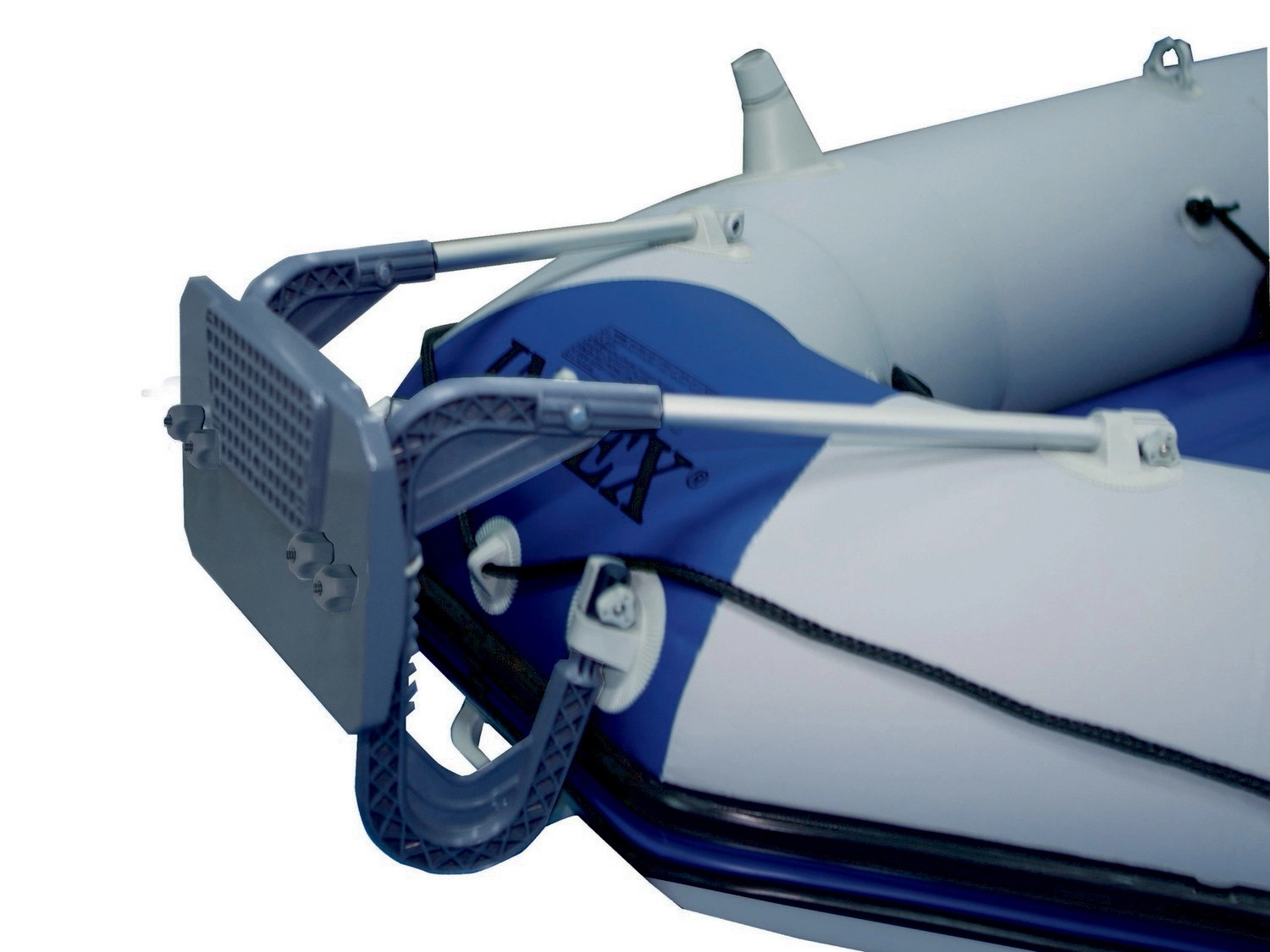 Dette kvalitets motorbeslag (agterspejl) er designet til pålidelig og solid montering af motoren på oppustelige både fra INTEX. Kombinationen af en stærk plastplade og en robust aluminiumsstativ sikrer stabilitet, lang levetid og samtidig lav vægt for nem håndtering.