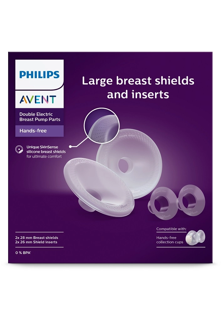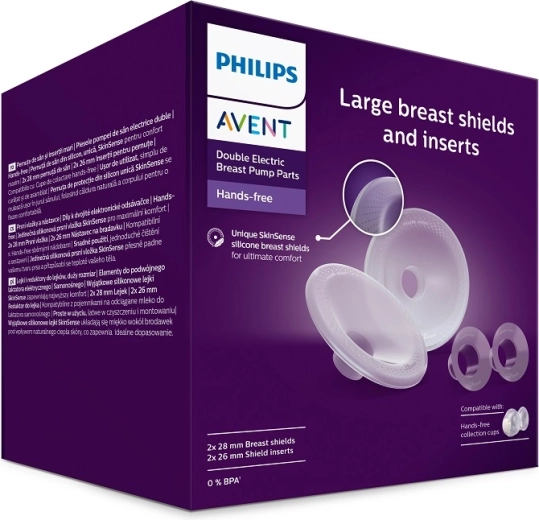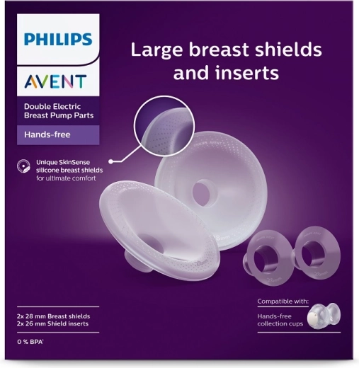 Takket være den gennemtænkte konstruktion med få dele er rengøring og samling hurtig og intuitiv. De forskellige størrelser af komponenter (28 mm tragt og 26 mm indlæg) giver en mere præcis tilpasning til større brystvorter og bryster, hvilket øger komforten og effektiviteten ved udmalkning. Brug udelukkende sammen med Philips AVENT opsamlingskopper i håndfri tilstand.