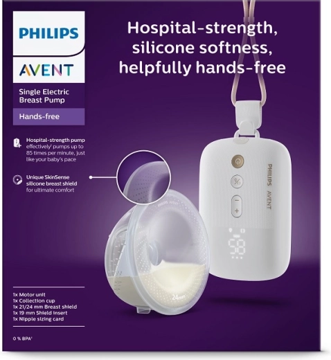 Philips Avent Hands‑Free Premium Plus giver frihed ved både amning og udpumpning. Takket være den lette, helt gennemsigtige kop har du konstant overblik over mælkestrømmen, mens den smarte motor arbejder i et mønster, der minder om babyens sutterytme for skånsom og effektiv udpumpning. Den stille ydeevne inspireret af hospitalsteknologi sikrer diskret brug derhjemme og på farten.