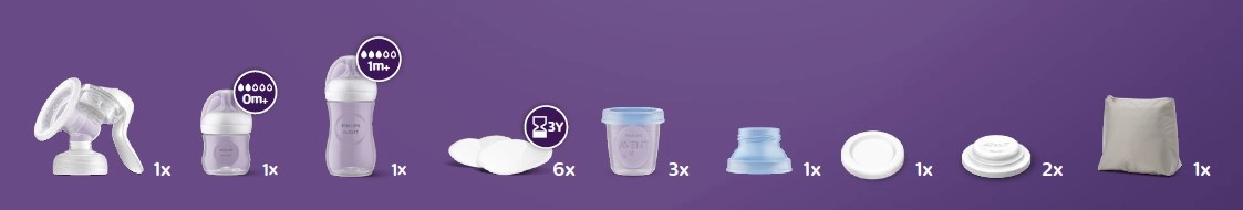 PHILIPS AVENT-startsættet giver alt, hvad en mor har brug for til at komme godt i gang med amning og udpumpning. Den manuelle brystpumpe med blød silikoneindsats masserer brystet skånsomt og hjælper med naturligt at starte mælkeflowet. Takket være det kompakte design og det ergonomiske håndtag er udpumpningen hurtig, stille og nem at kontrollere – når som helst og hvor som helst.